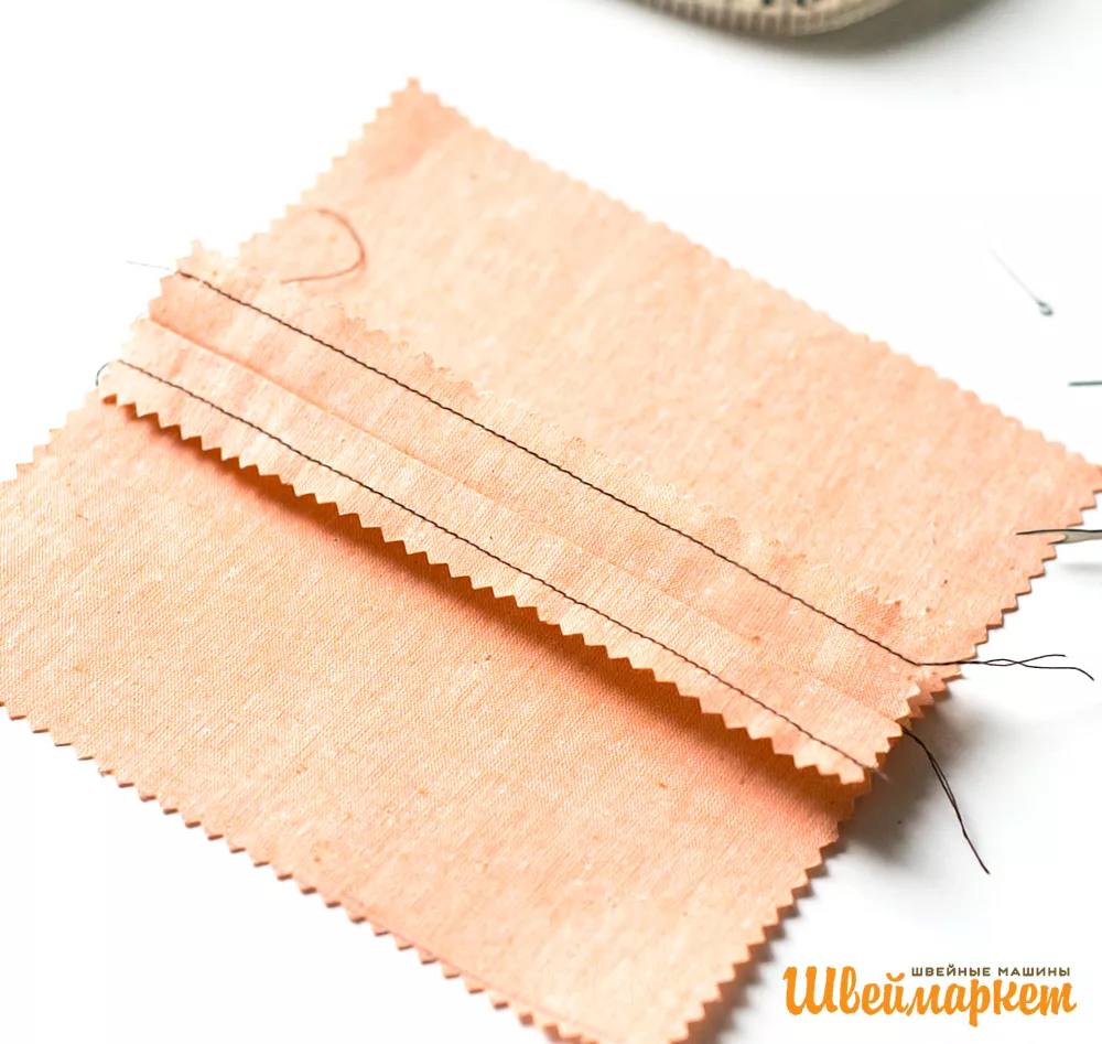 2. Перестраиваем швейную машину на режим зиг-заг. Прокладываем встык к прямой строчке.