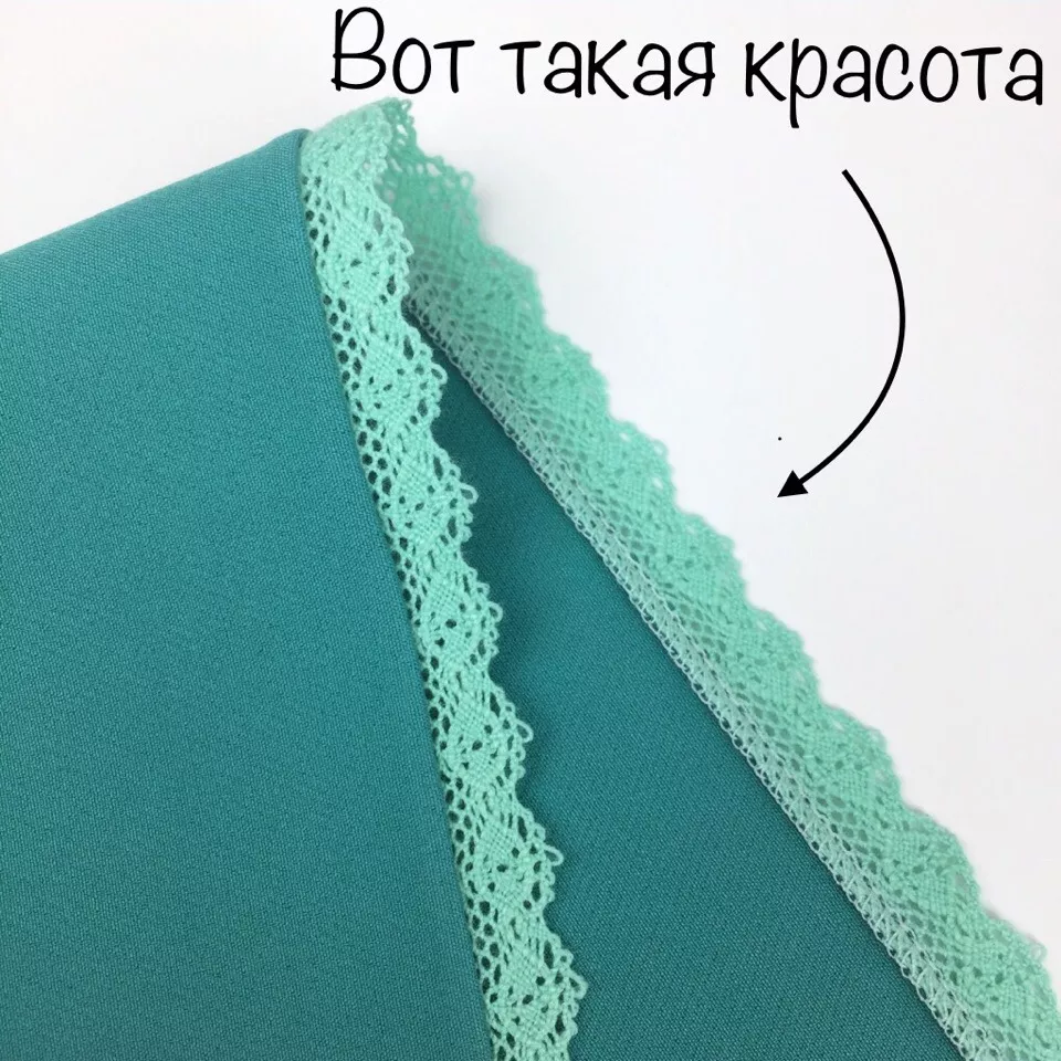 3. Складываем ткани и кружево лицом к лицу вдоль направителя.