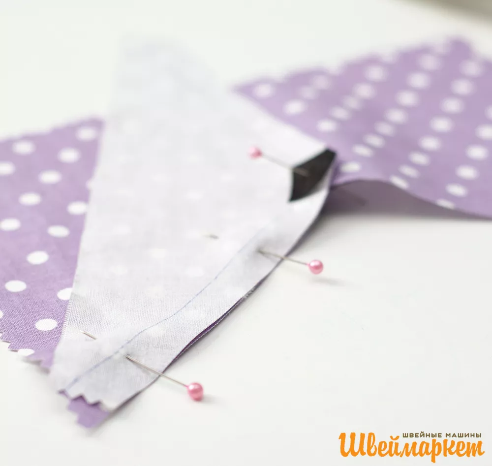 6. Уравниваем срезы по другой стороне, стачиваем, двигаясь к центру. Высекаем лишний припуск.