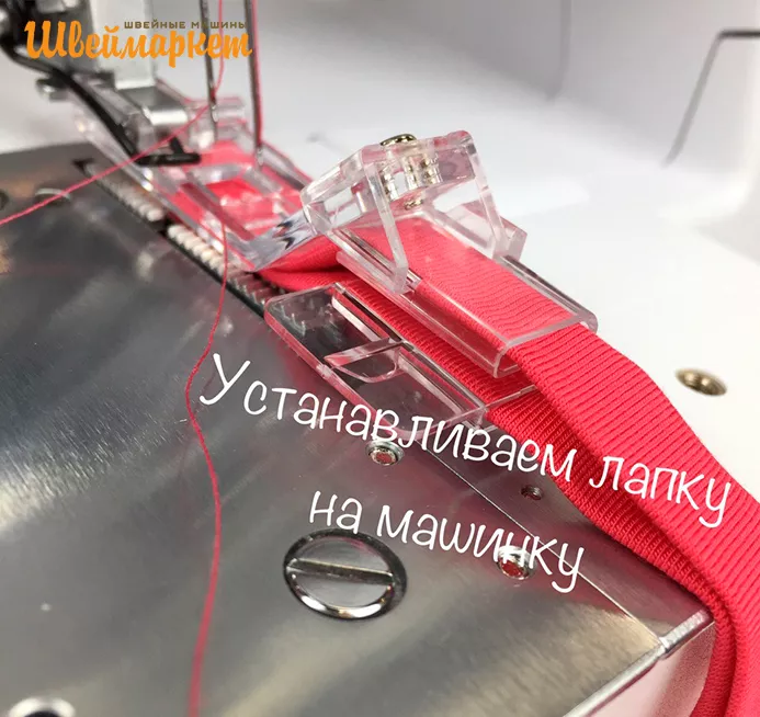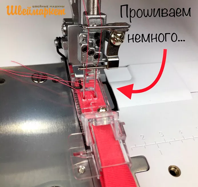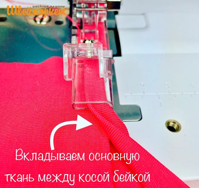 3. Заводим косую бейку в лапку, устанавлием ее на машину.