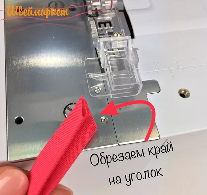 2. Готовим косую бейку, срезаем уголок на одной и сторон. Читайте наш пост из блога - Как сделать косую бейку?