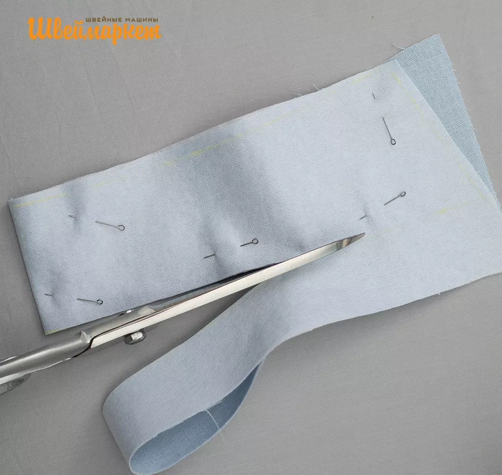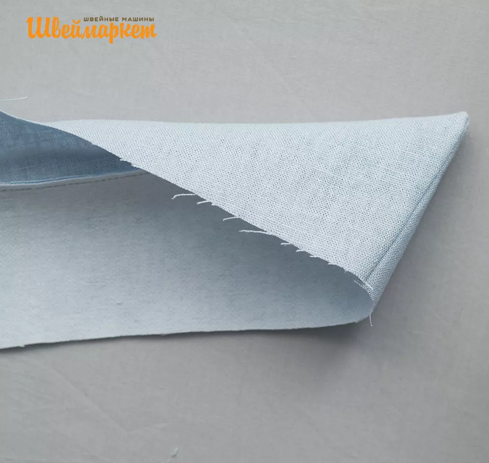 Обтачиваем нижний воротник верхним по отлету и концам. Подрезаем припуски. Можно аккуратно заутюжить уголочки, чтобы при выворачивании получить красивую форму уголков.