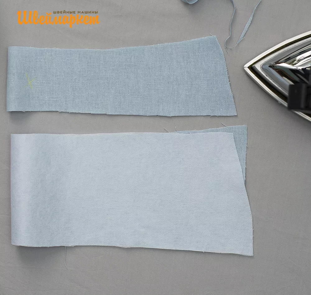 Готовим детали. Верхнюю деталь воротника необходимо продублировать. На заметку, если материал дает усадку, то можно выкроить уже из продублированного материала. Расход получается не экономичный, целесообразно только при работе с натуральными тканями, которые могут давать дополнительную усадку при дублировании. Нижний воротник должен быть слегка меньше верхнего по отлету и по концам, чтобы дальше была возможность сформировать красивый перекант.