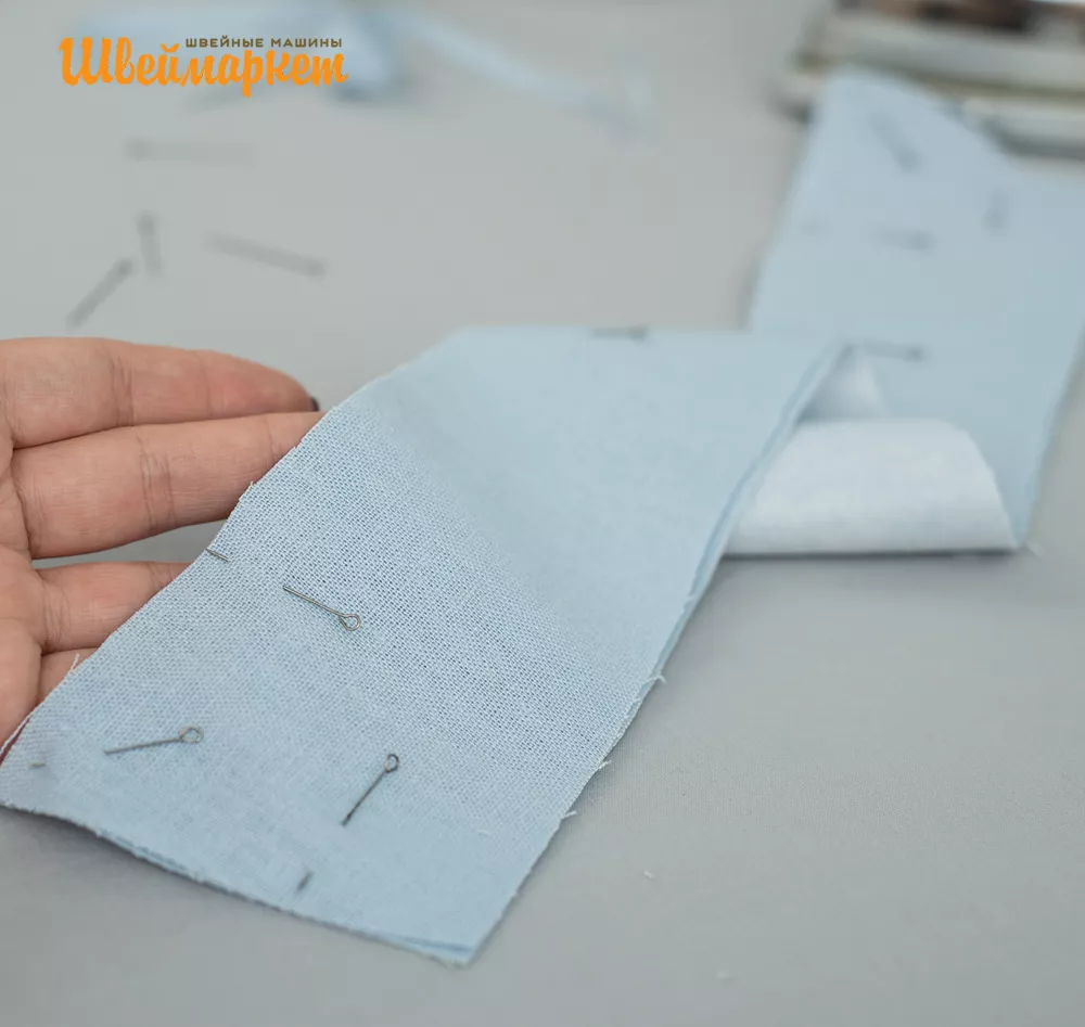 Складываем лицом к лицу детали верхнего и нижнего воротника. Скалываем, равномерно распределяем посадку по верхнему воротнику.