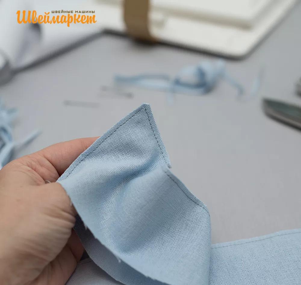 Обтачиваем нижний воротник верхним по отлету и концам. Подрезаем припуски. Можно аккуратно заутюжить уголочки, чтобы при выворачивании получить красивую форму уголков.