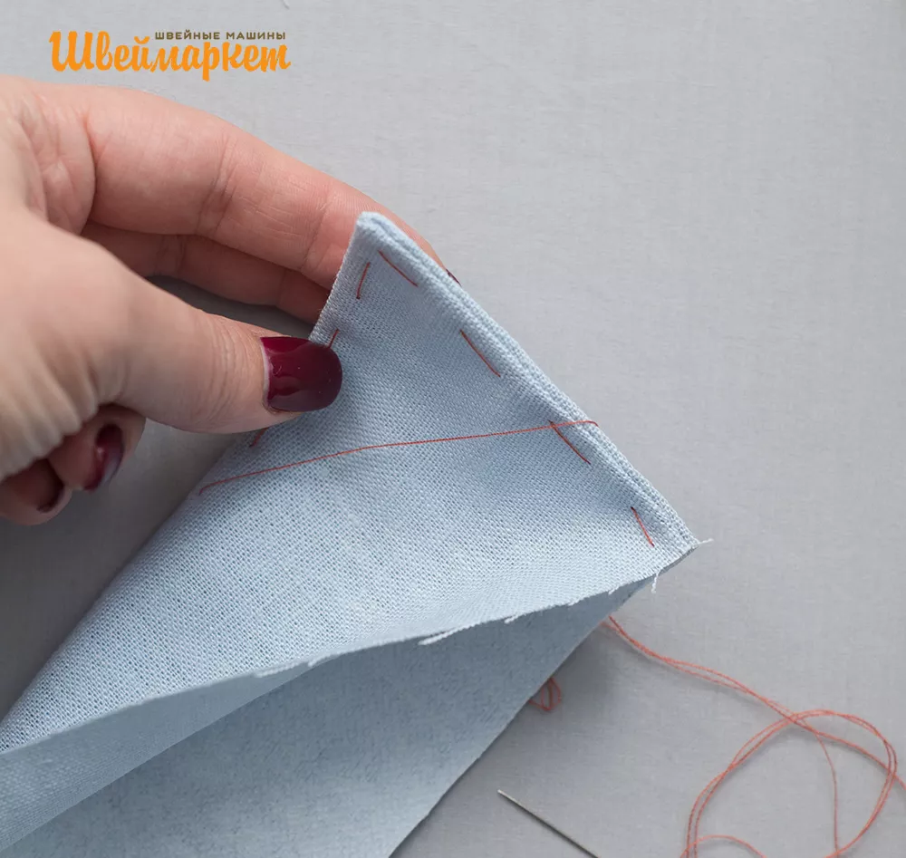 Выворачиваем воротник, выправляем, формируем перекант. Выметываем, аккуратно приутюживаем, не захватывая нитку сметки.