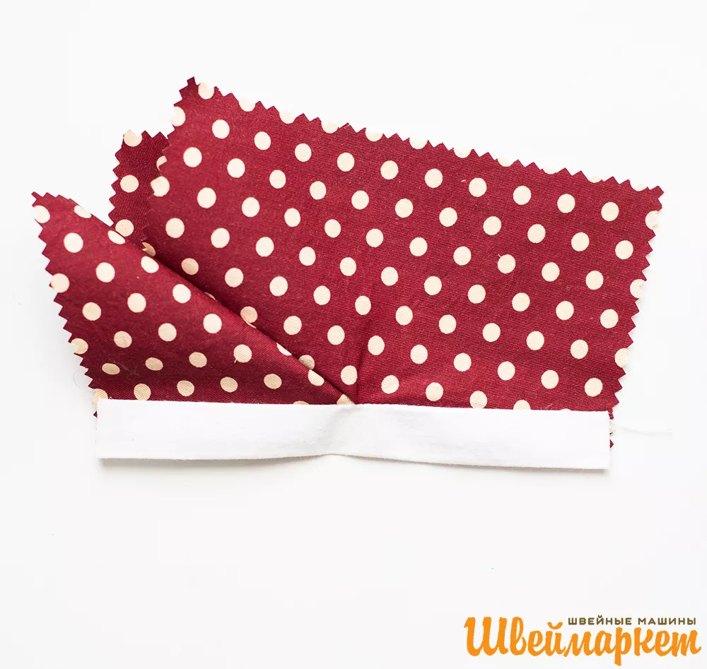 5. Заутюживаем припуски на бейку, затем заутюживаем срез бейки на 1 см.