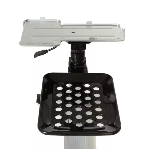 Газлифт служит для легкой регулировки высоты подставки с прессом. Управляя газлифтом, можно выбрать комфортную для работы высоту. На основной стойке подставки есть устойчивые горизонтальные основания и резиновые противоскользящие накладки. К подставке прикрепляется полочка для белья.