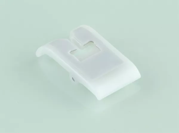 Лапка изготовлена из пластика с тефлоновым покрытием (материал с низким коэффициентом трения). Это позволяет шить материалы, которые плохо продвигаются под обычной металлической лапкой, вследствие чего появляются дефекты в виде неравномерной строчки и залипания ткани . Предназначена для работы с кожей, винилом, тканями со скользким покрытием, синтетическими кожзаменителями, плащевыми тканями.