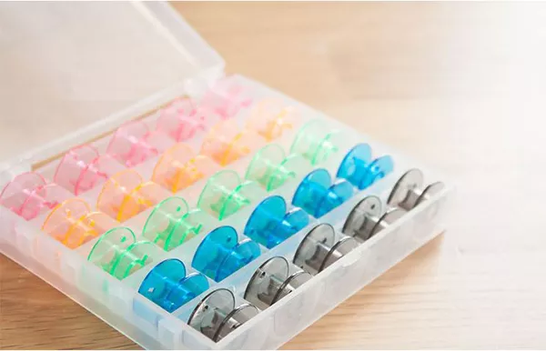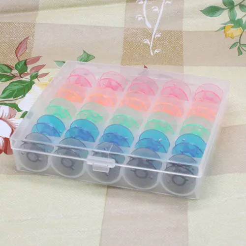 Удобный органайзер для ваших шпулек с наполнением из 25 цветных шпулек. Пластиковая шкатулка с прозрачной крышкой для хранения шпулек для швейных машин