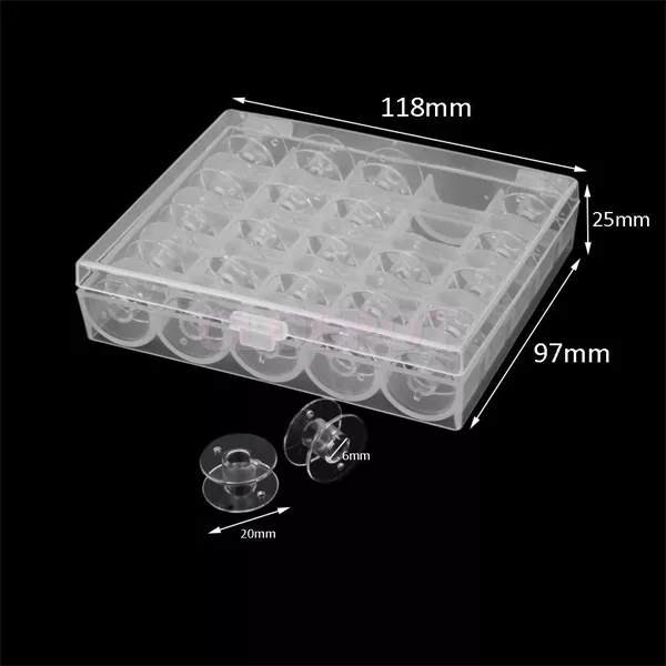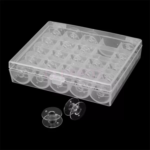 Удобный органайзер для ваших шпулек с наполнением из 25 прозрачных шпулек. Пластиковая шкатулка с прозрачной крышкой для хранения шпулек для швейных машин