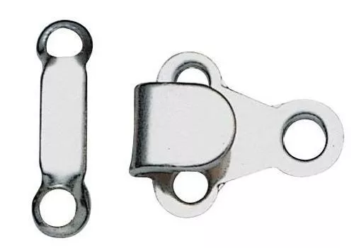 Скромно выглядящий и изготовленный из нержавеющего металла, крючок для брюк и юбок выигрывает, прежде всего, за счет своей гладкой поверхности и скругленных кромок, что обеспечивает приятный комфорт открытия и закрытия. Также и пришивание выполняется легко, ведь в крючке для брюк предусмотрено три пришивных отверстий, удерживающая петля также имеет два отверстия. Крючки для брюк или также для юбок предлагаются на выбор в серебряном и в черном цвете, а также в различных вариантах ширины. В каждой упаковке находится соответственно два крючка и петли.