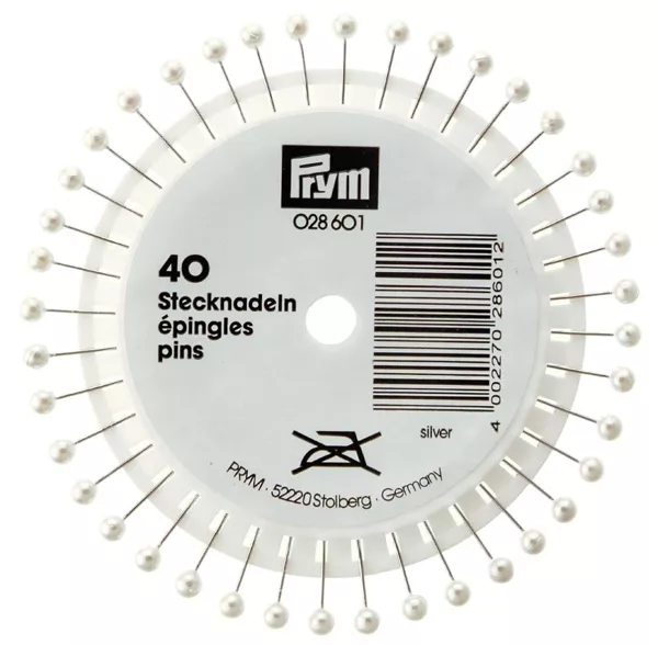 Prym 028601 Булавки с жемчужной головкой, серебристый цвет, 0.65х38 мм