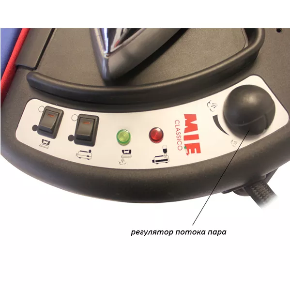 Мощный парогенератор гладильной системы MIE CLASSICO вырабатывает пар и подает его под давлением на утюг. С помощью регулятора можно выбирать необходимую интенсивность пара.