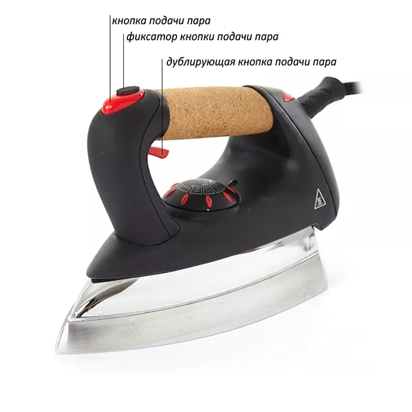 Утюг гладильной системы MIE CLASSICO - это настоящий профессиональный утюг. Толстая подошва и пробковая ручка обеспечивают комфорт и высокий результат глажения. На утюге системы MIE CLASSICO две кнопки подачи пара. Одна расположена привычно сверху ручки утюга, другая – под ручкой, при глажении эта копка оказывается под указательным пальцем правой руки, что очень удобно для обеспечения непрерывной подачи пара.