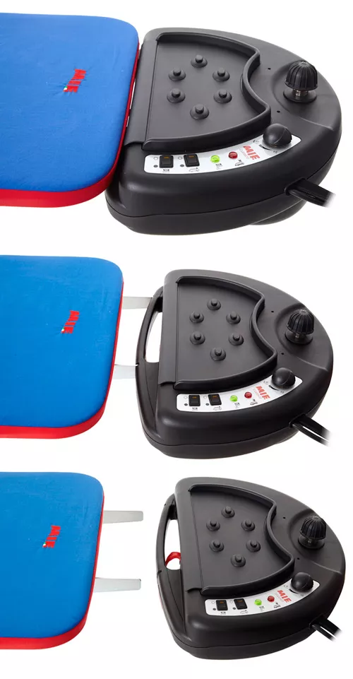 Особенностью гладильной системы MIE CLASSICO является съемный парогенератор. При желании парогенератор с утюгом легко отсоединяются от гладильной доски и могут быть использованы автономно. Это очень удобно при вертикальном отпаривании на весу, например, штор или объемной верней одежды, которую неудобно размещать на гладильной доске.