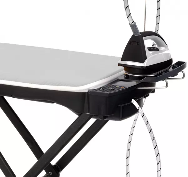 В этой системе конструкторы объединили удобный утюг, легкий алюминиевый нержавеющий стол с подогревом рабочей поверхности, наддувом и принудительным отводом пара и мощный парогенератор с бойлером из нержавеющей стали.