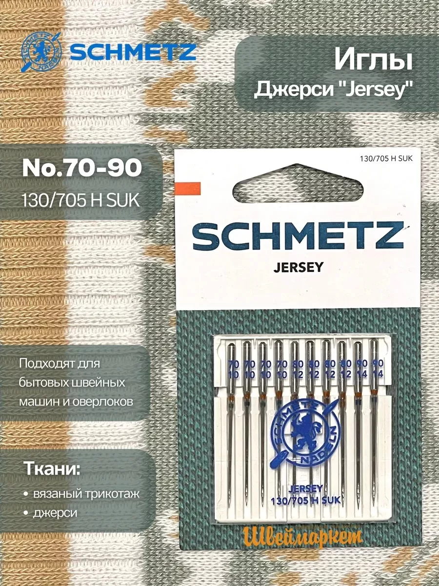 Иглы Schmetz Джерси №70-90, 10 шт.