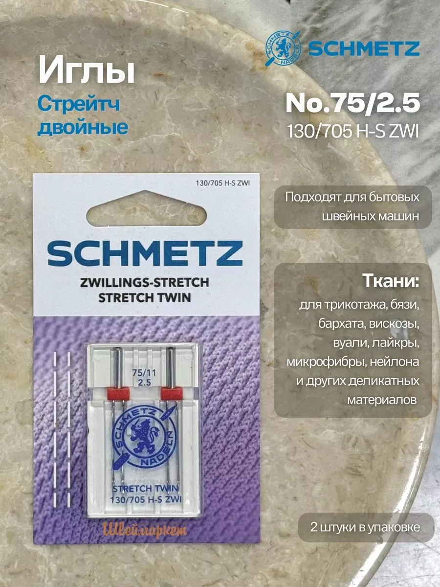 Иглы Schmetz Стрейч двойные №75/2.5, 2 шт.