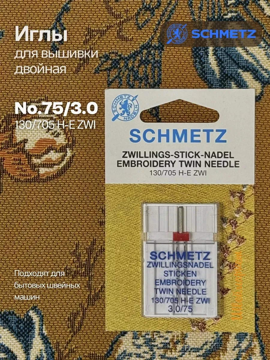 Иглы Schmetz двойные для вышивки 130/705H-E ZWI № 75/3.0, 1 шт.