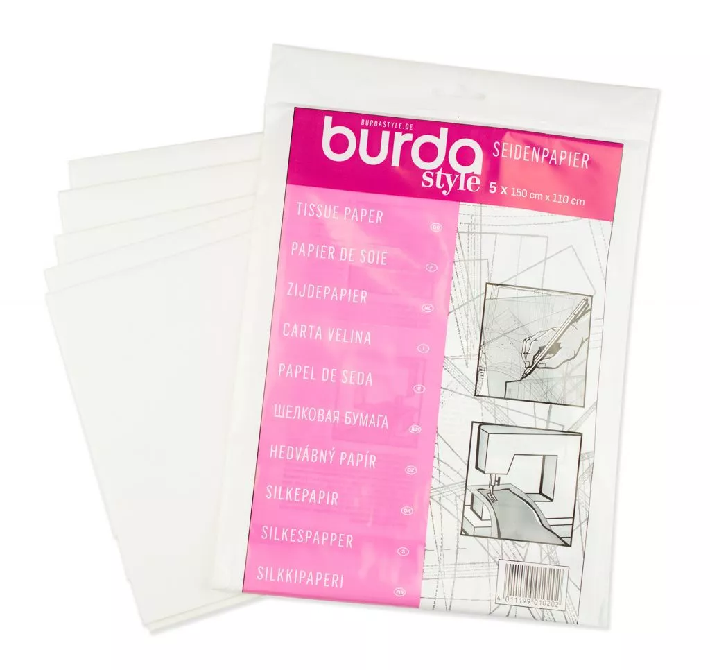 Burda 1020A Калька для выкроек (полупрозрачная шелковая бумага) - размер 150см*110см. 5 листов