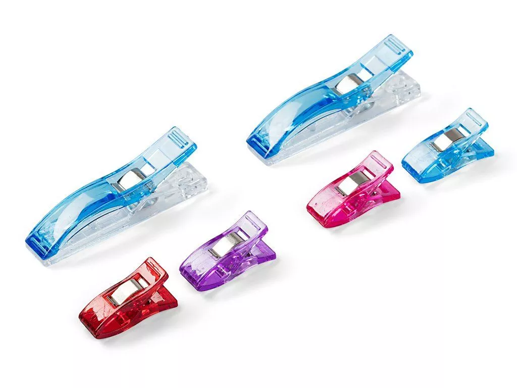 Клипсы удобной формы двух размеров позволяют зафиксировать несколько слоев ткани.