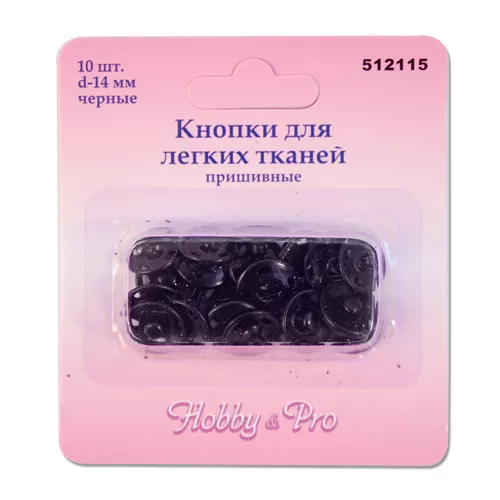 Кнопки для легких тканей пришивные, 14 мм, черные, 10 компл.