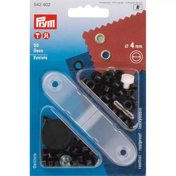 PRYM Люверсы (блочки) для ремней, черные, латунь, 50шт., D=4mm
