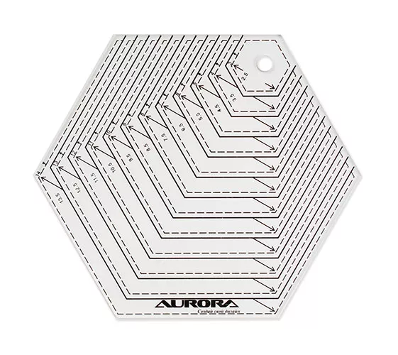 Линейка для пэчворка "Шестиугольник" для изготовления шаблонов высотой от 2,5 см до 13,5 см.