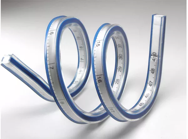 Гибкое лекало имеет сторону с сантиметровой шкалой и сторону с дюймовой шкалой. Его рабочая длина составляет 50 см / 20 дюймов. См и дюймы на одной стороне.