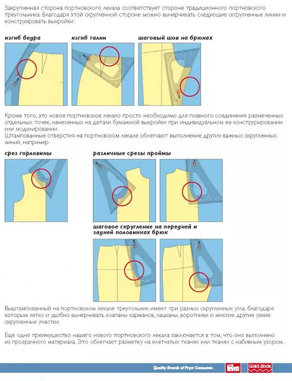 Многофункциональное портновское лекало Prym, выполненное из прозрачного пластика, упрощает и облегчает разметку линий пояса и сидения, горловины, проймы, припусков, складок, петель и т.д. Оно станет незаменимым помощником, как начинающим портным, так и опытным.