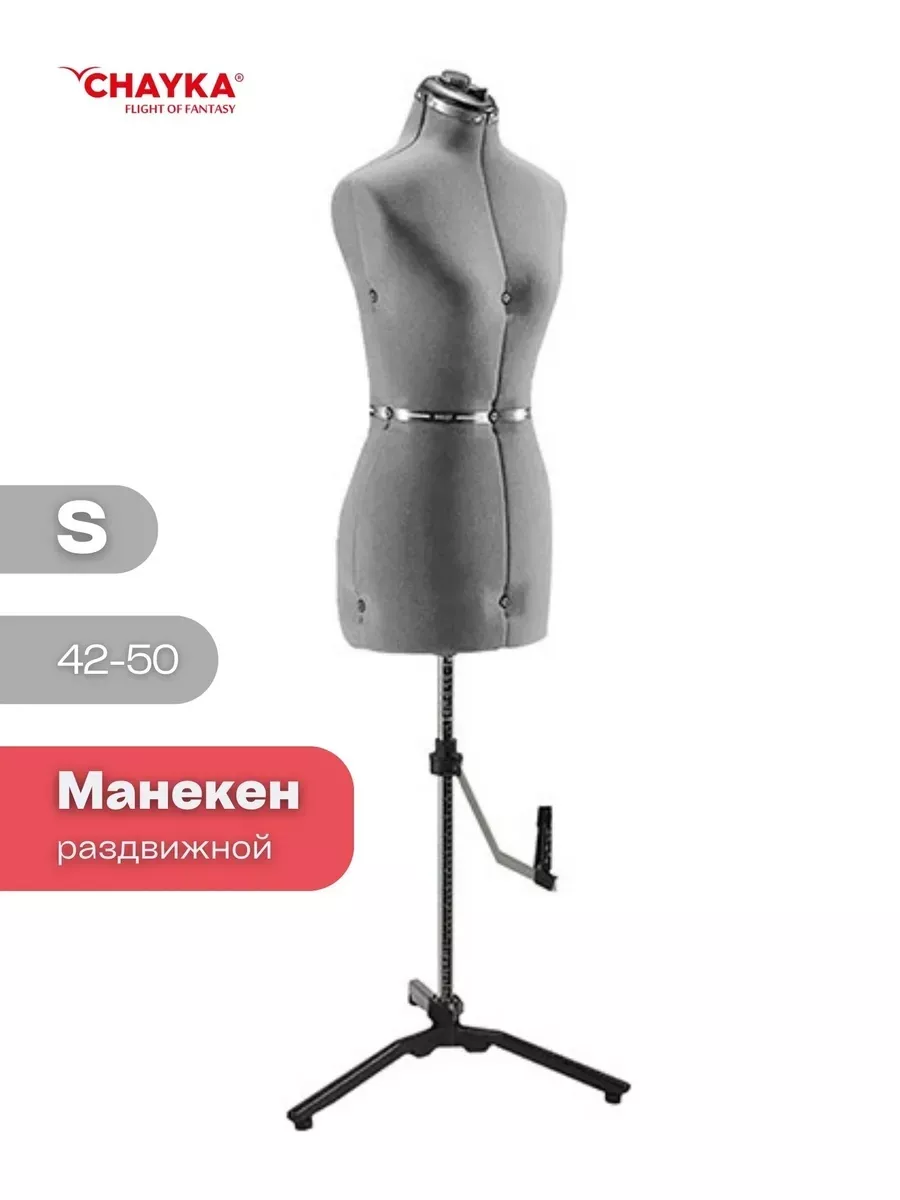 Манекен женский CHAYKA FlexForm «S», размер 42–50. Удобный помощник для создания одежды с точной посадкой. Манекен портновский раздвижной женский CHAYKA FlexForm «S» регулируется в 12 плоскостях для индивидуальной подгонки изделия. Настраиваются объём груди, талии, бёдер и шеи. Высота манекена изменяется одним движением с помощью стойки.