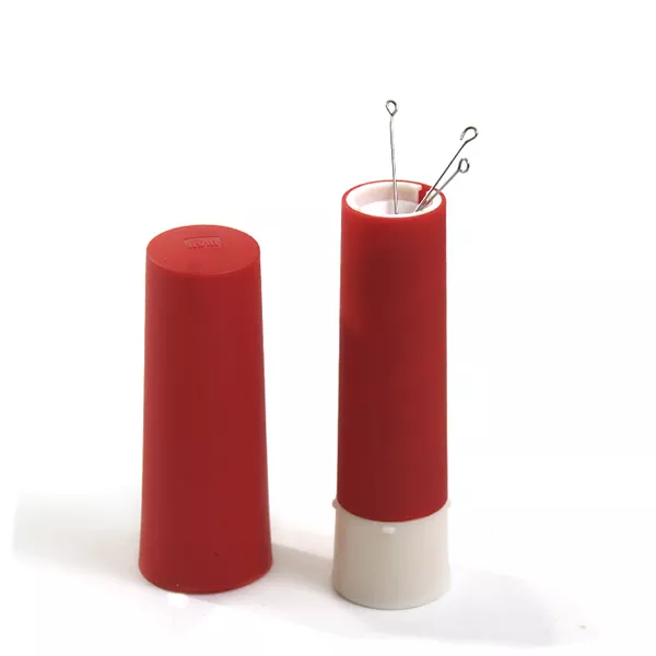 Надежное и удобное хранение игл (не включены в комплект). Поворачивая основание игольницы, внутри регулируется высота положения магнита, что позволяет легко извлекать иглы. Применяется для швейных игл различных размеров. Наполнять иглами острыми концами вниз. Будьте осторожны при открывании колпачка и извлечении игл