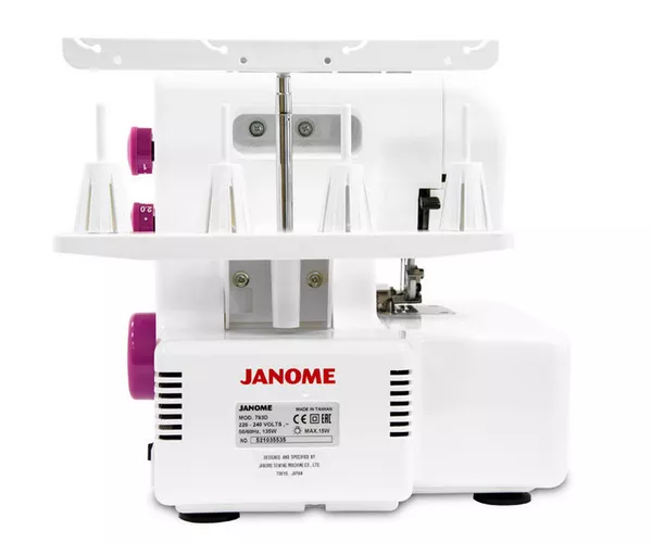 На оверлоке Janome 793D Вы сможете делать 3-х и 4-х ниточную обработку края и ролевый шов (закрутку) для обработки тонких тканей. Заправка машина происходит по цветовой схеме.