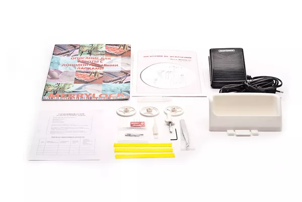 Оверлок Merrylock 003 обладает такими техническими характеристиками и функциями: 3 вида строчки, длина стежка от 1 до 4мм, скорость шитья 1300 об/мин, нож установлен снизу вверх, возможность отключения ножа (обрезки ткани), дифференциальная подача ткани, цветная маркировка для облегчения процесса заправки, нож для обрезки косички, регулировка давления лапки на ткань, ручка для переноса, освещение рабочей поверхности для предотвращения напряжения зрения, удобная стойка для ниток. Электронная педаль позволяет управлять скоростью шитья. Так же в комплекте к оверлоку Merrylock 013 идут универсальная оверлочная лапка, которая непосредственно установлена на оверлоке, руководство по применению на русском языке, педаль.