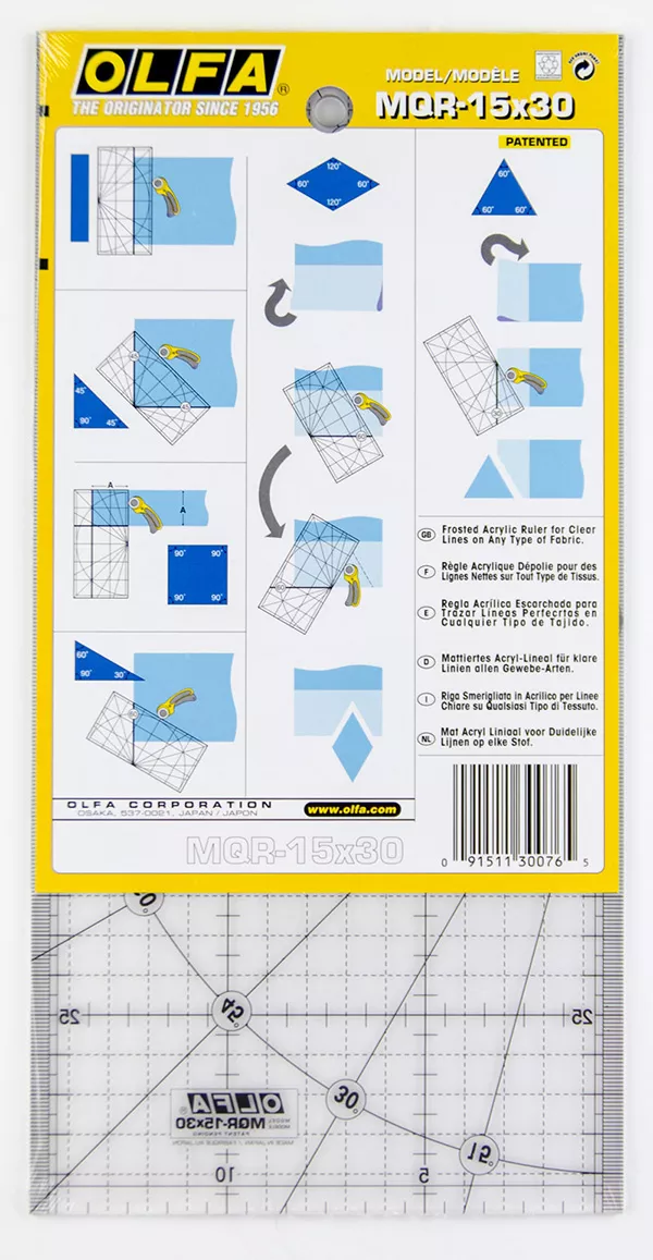 Матовая акриловая поверхность линейки с четкими черными цифрами позволяет хорошо различать цифры как на светлых так и на темных тканях. На линейке нанесены основные линии сетки через 50 мм, а также лучевые линии под углами 15°, 30°, 45°, 60° и 90°, обеспечивающие выполнение идеальных разрезов под указанными углами. Между основными линиями сетки имеется дополнительная шкала с ценой деления 10 мм. Линейка приспособлена для работы как «правшей», так и «левшей».