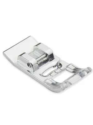 Лапка используется для пришивания лент и тесьмы до 5мм. Благодаря прозрачному пластику увеличивается обзор рабочей зоны и контроль над процессом. За счет направляющего отверстия лента или тесьма ложится ровно, получая при этом равномерную строчку. Дополнительного эффекта можно добиться с помощью декоративных строчек.