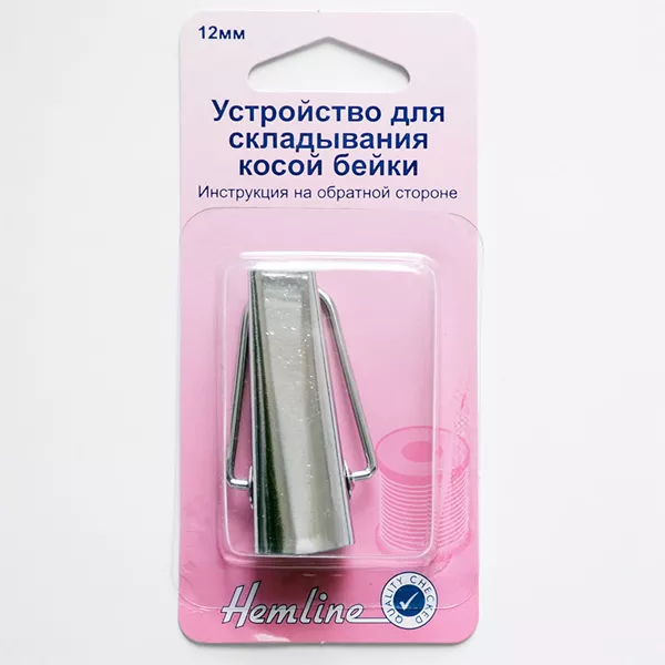 - Предназначение: Устройство используют для создания косой бейки шириной 12мм (в сложенном виде - шириной 6 мм). С помощью этого приспособления можно выполнить обычную косую бейку из необходимого материала.
