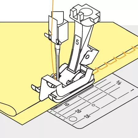 Лапка потайного стежка# 5 подходит практически для всех материалов. Ее можно также без проблем применять с левой или правой позицией иглы при обтачивании узких кромок на плотных и средней плотности тканях. Откройте для себя лапку потайного стежка # 5 и выполняйте с ней сложные краеобметочные работы.