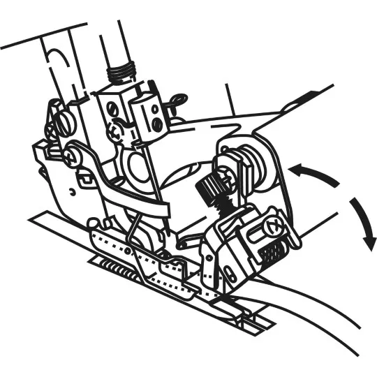 ВАЖНО: Для равномерной подачи материала, особенно при работе с тонкими материалами, не следует слишком сильно увеличивать прижим лапки.
