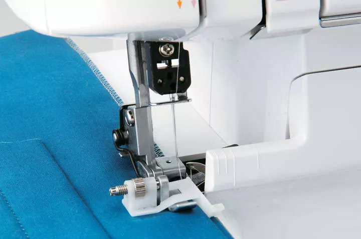 - Настройте направляющую материала так, чтобы игла входила в подвернутый край на расстоянии 2,5 — 3,0 мм.