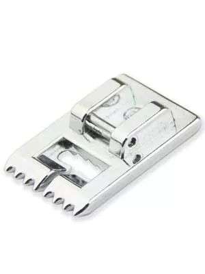 Лапка предназначена для выполнения параллельных декоративных защипов, имеет на подошве бороздки, в которые при шитье затягивается ткань, за счет чего возникает рельефная складочка на одинаковом расстоянии. Используется в сочетании с двойной иглой.