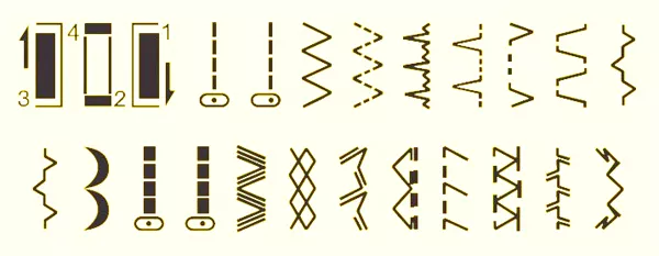 прямая, зигзаг, эластичные, потайные, оверлочные, декоративные |