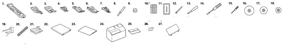 универсальная прижимная, оверлочная, для вшивания молнии, для монограмм, для обметывания петель, для потайной строчки, для пришивания пуговиц |