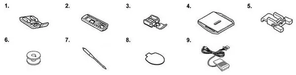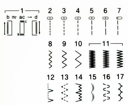 стандартная-зигзаг, для обметывания петель, для вшивания молнии, для пришивания пуговиц |