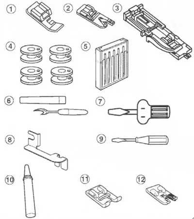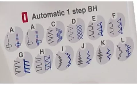 стандартная-зигзаг, для вшивания молний, для декоративных строчек, для вшивания молнии, подрубочная 2 мм, для обметывания петель , оверлочная |