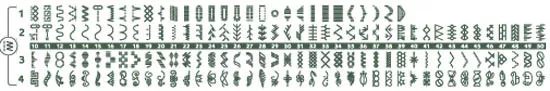 прямая, прямая усиленная, зигзаг, зигзаг усиленный, зигзаг эластичный, оверлочные, потайные, сотовая, штопка, эластичные, атласные сатиновые, декоративные, крестообразные, квилтинг, пэчворк |