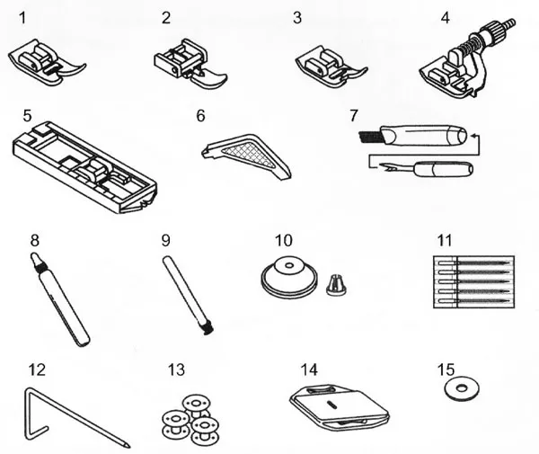 стандартная-зигзаг, для декоративных швов, для обметывания петель, для вшивания молнии, подрубочная |