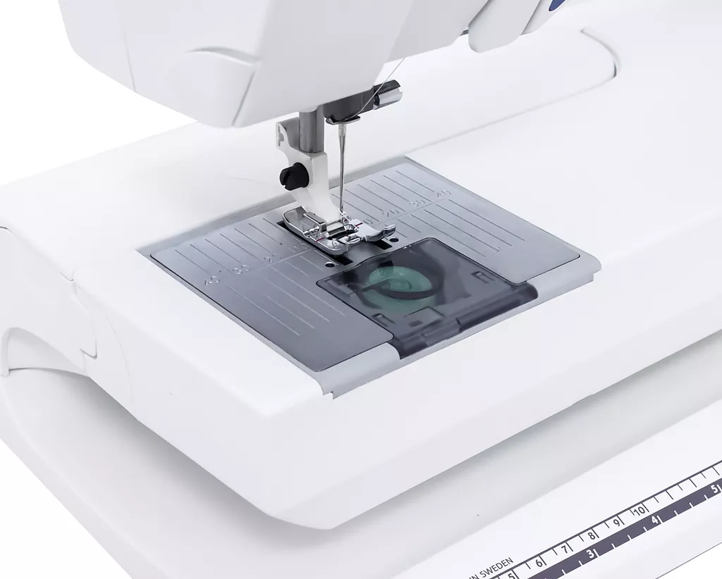 Длина рабочей платформы справа от иглы составляет 25 сантиметров! И это станет огромным плюсом при работе, особенно для фанатов квилтинга и пэчворка.
