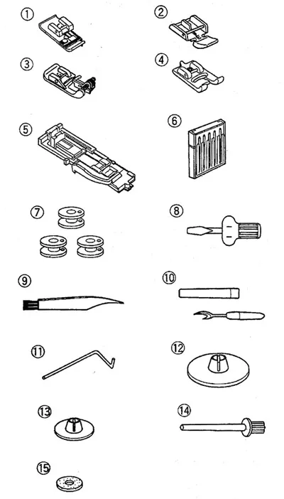 стандартная-зигзаг, для обметывания петель, для вшивания молнии, для потайной строчки, оверлочная, для пришивания шнура |